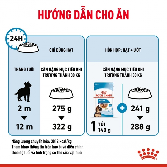 Dành cho chó kích cỡ Maxi (cân nặng tối đa từ 26 - 44kg) và đang trong lứa tuổi Puppy từ 2 đến 15 tháng tuổi.