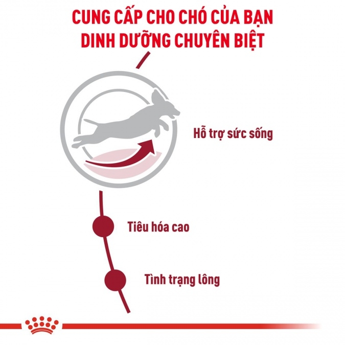 Những giống chó size Medium được biết đến có nguồn năng lượng dồi dào vì đa số giống chó này được sử dụng hỗ trợ trong các công việc của con người từ rất lâu. Cho dù giống chó size Medium này được nuôi trong nhà hay dành thời gian hoạt động ngoài trời, với ROYAL CANIN Medium Adult sẽ giúp giống chó này duy trì khả năng phòng thủ tự nhiên trong suốt vòng đời của chúng, đồng thời cung cấp năng lượng cân bằng cho giống chó này giúp duy trì trọng lượng khỏe mạnh.