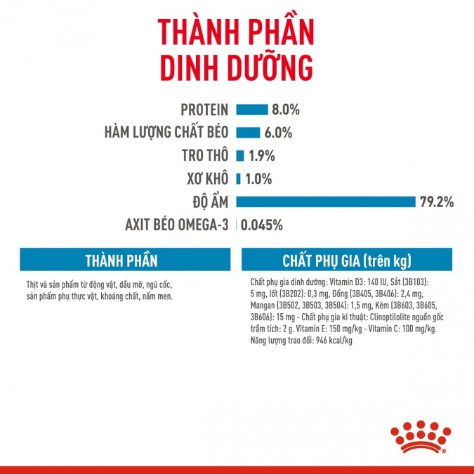 Thành phần dinh dưỡng trong thức ăn cho chó ROYAL CANIN Mini Junior (Ảnh: www.cityzoo.vn)