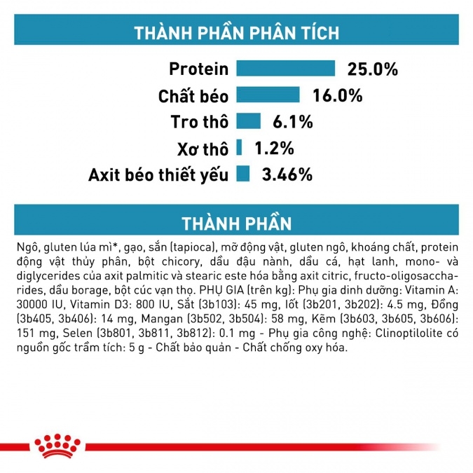 Thành phần dinh dưỡng trong ROYAL CANIN Skin Care hỗ trợ chó mắc bệnh dị ứng (Ảnh: www.cityzoo.vn)