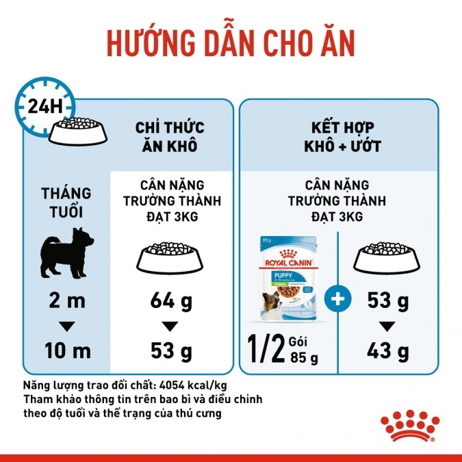 Dành riêng cho chó siêu nhỏ có kích cỡ dưới 4 kg, ở độ tuổi từ 2 - 10 tháng